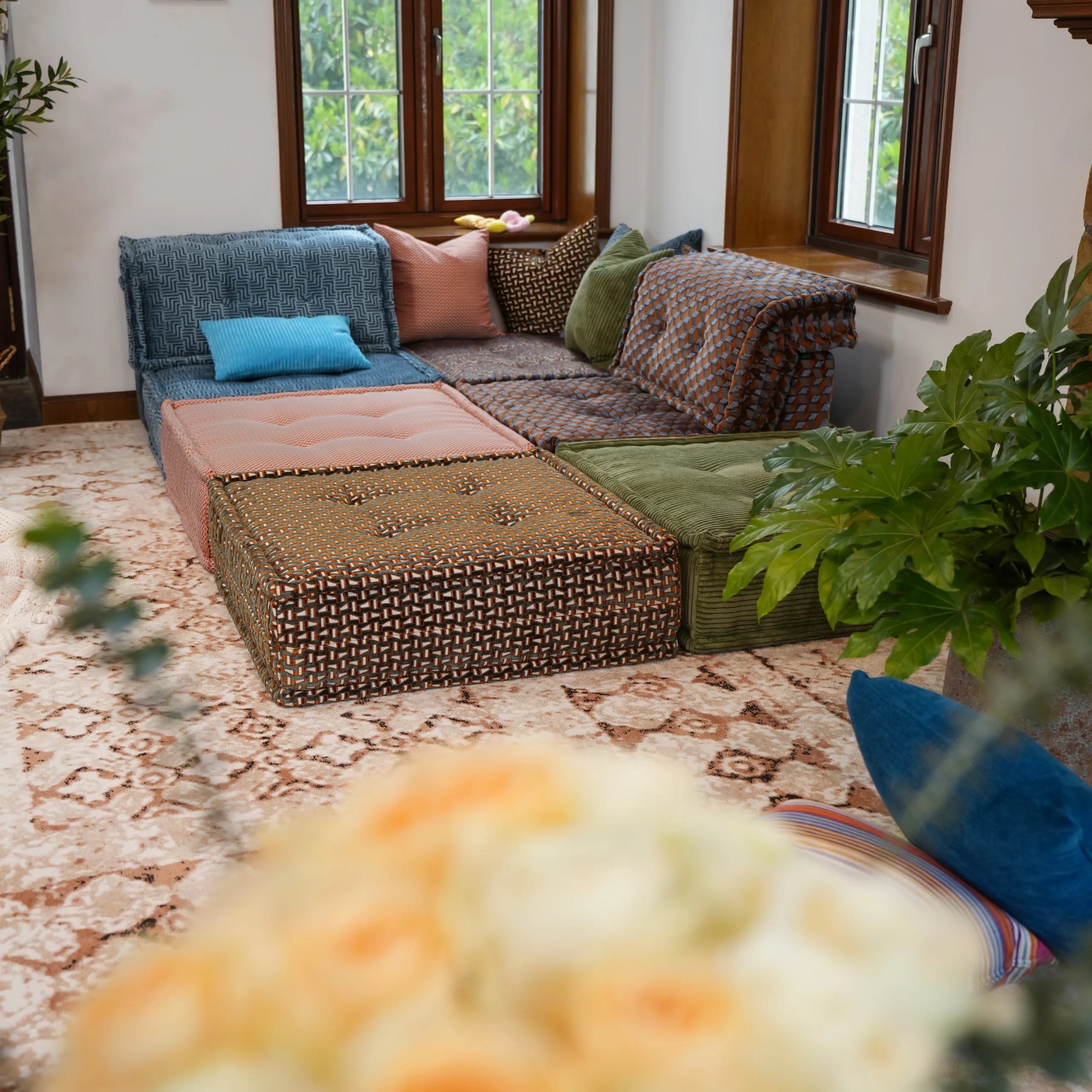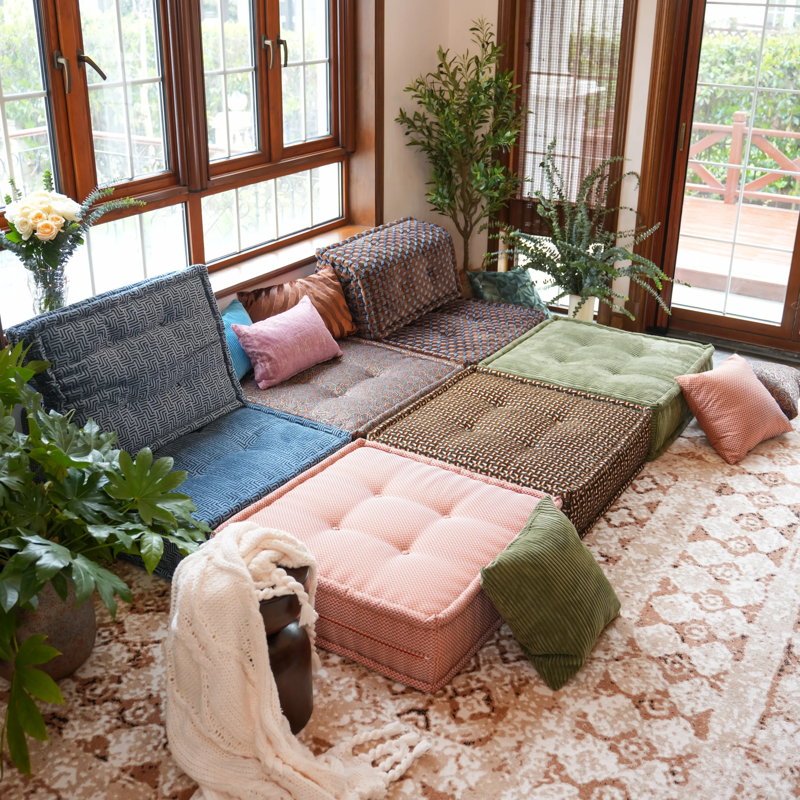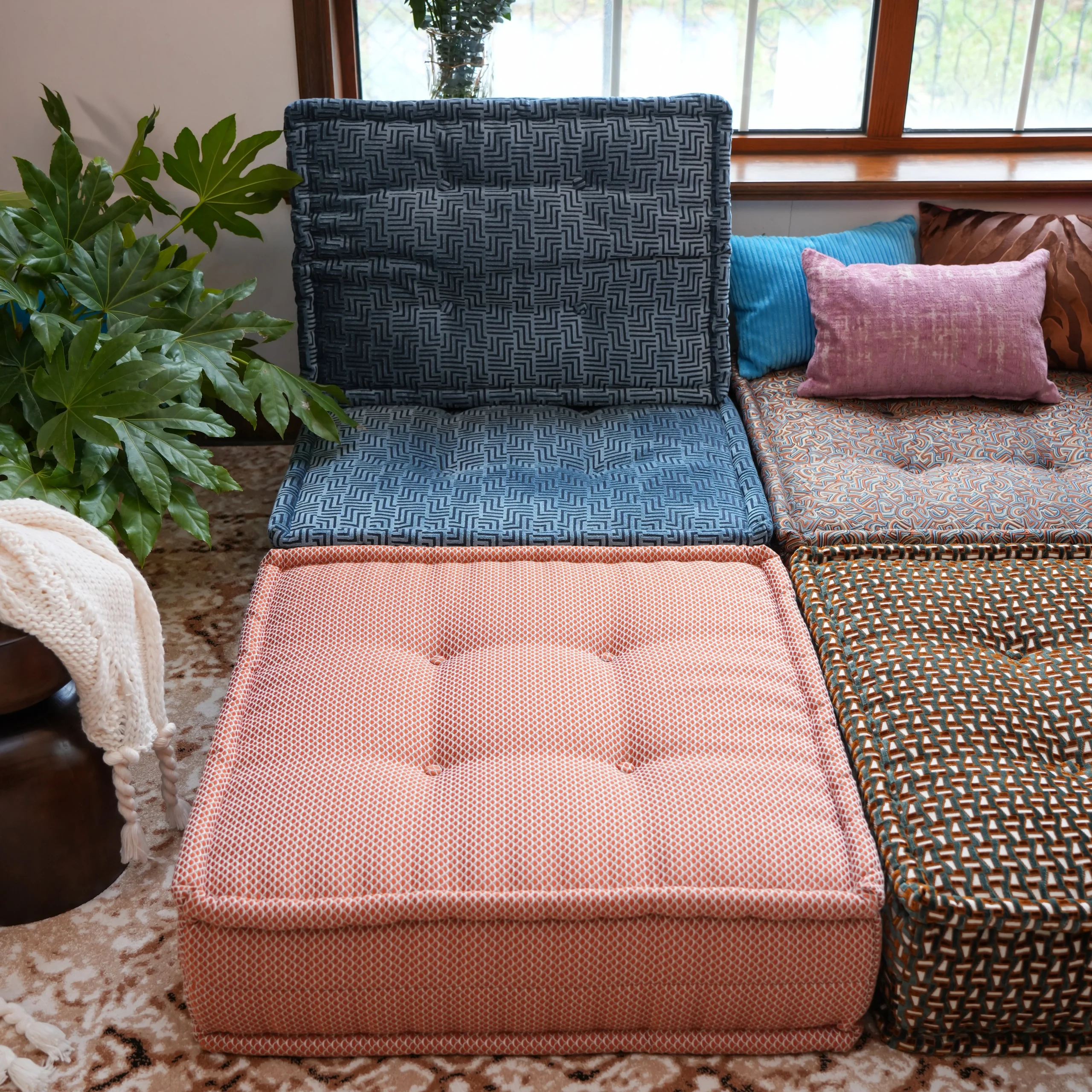 Our modular sofa is made up of individual square modules that can be arranged in various configurations—linear, L-shaped, U-shaped, or even as standalone pieces. The flexibility allows it to adapt to different room layouts and purposes, from lounging to entertaining.