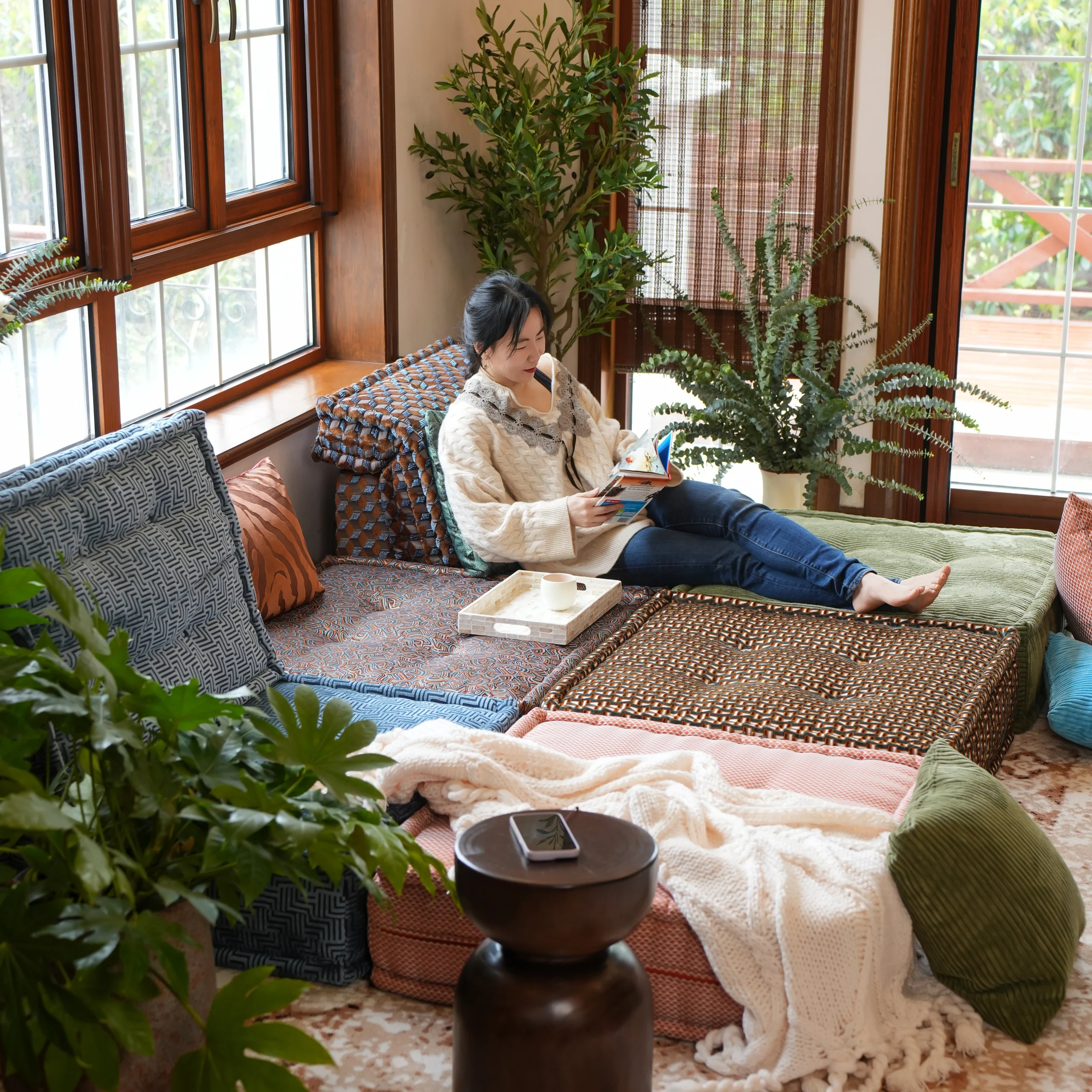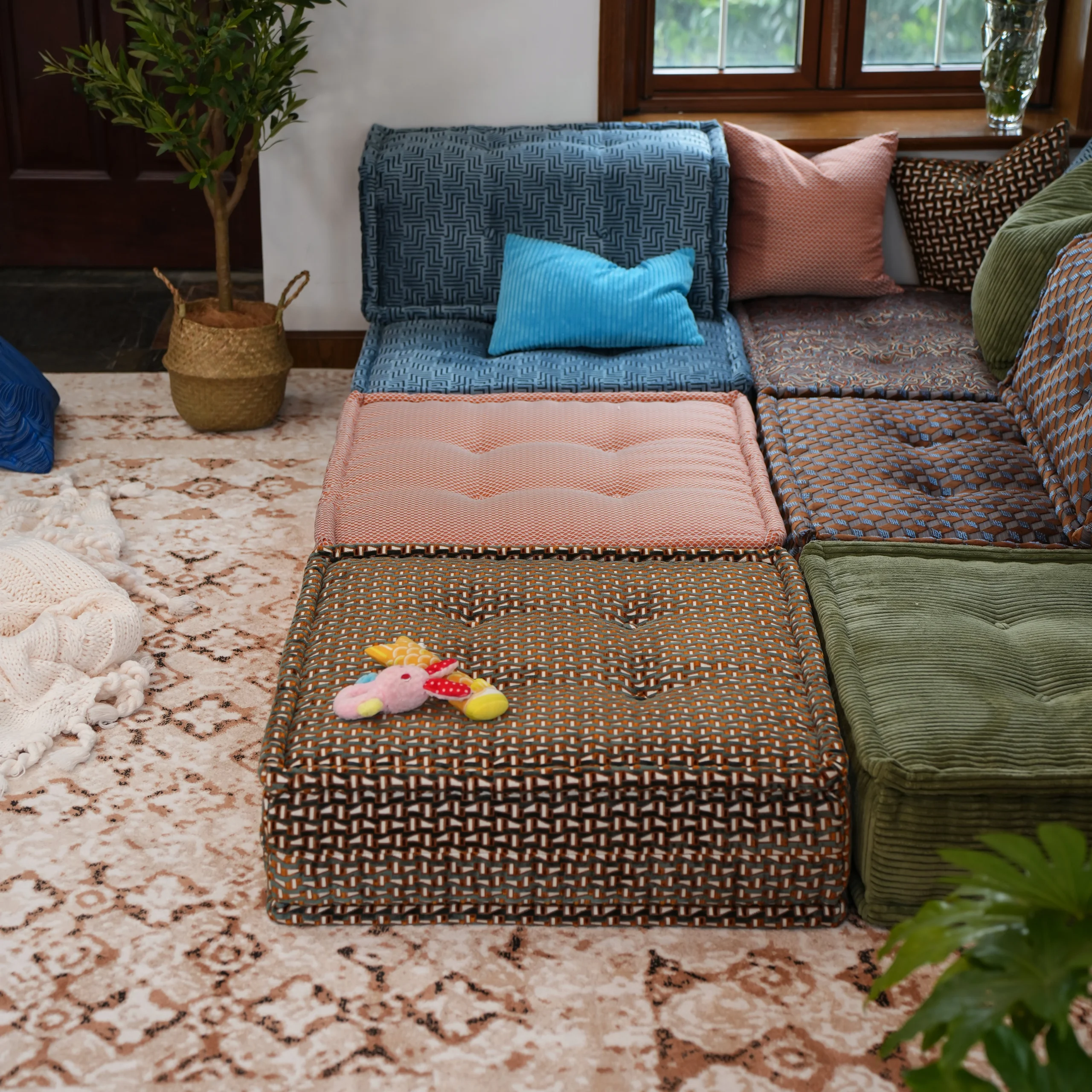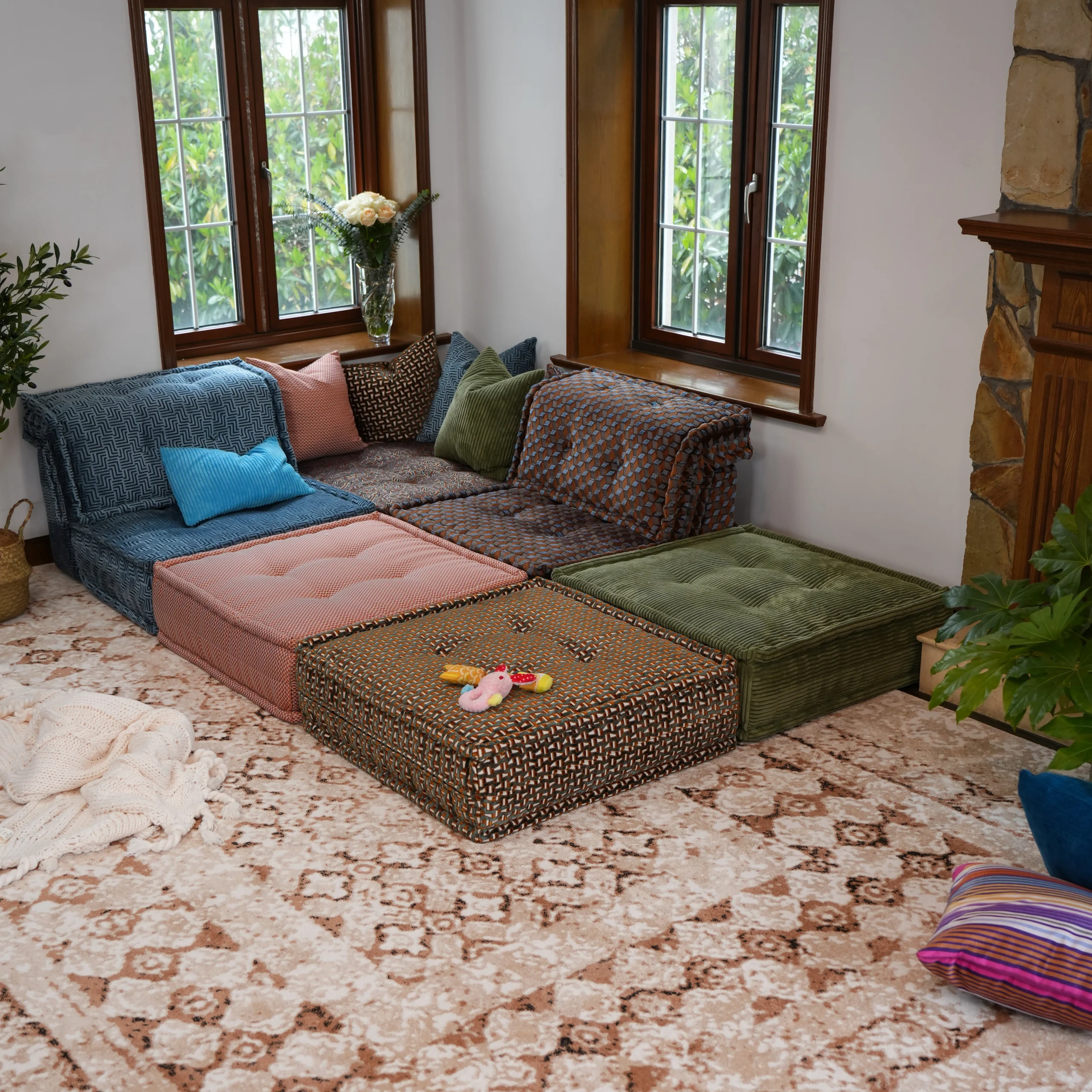 Our modular sofa is made up of individual square modules that can be arranged in various configurations—linear, L-shaped, U-shaped, or even as standalone pieces. The flexibility allows it to adapt to different room layouts and purposes, from lounging to entertaining.