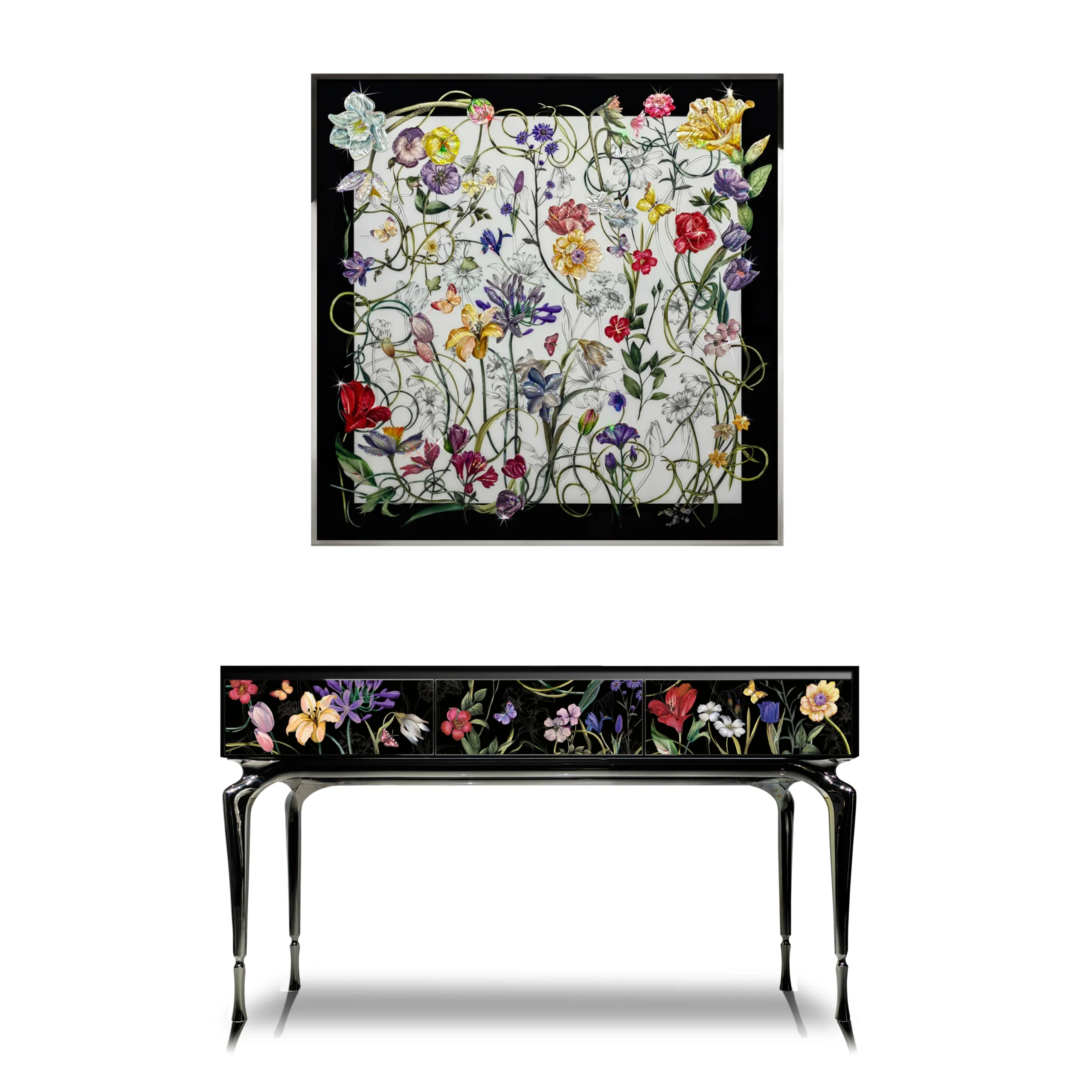 Crystal Inlay Furniture: Secret Garden Console Table (Black)