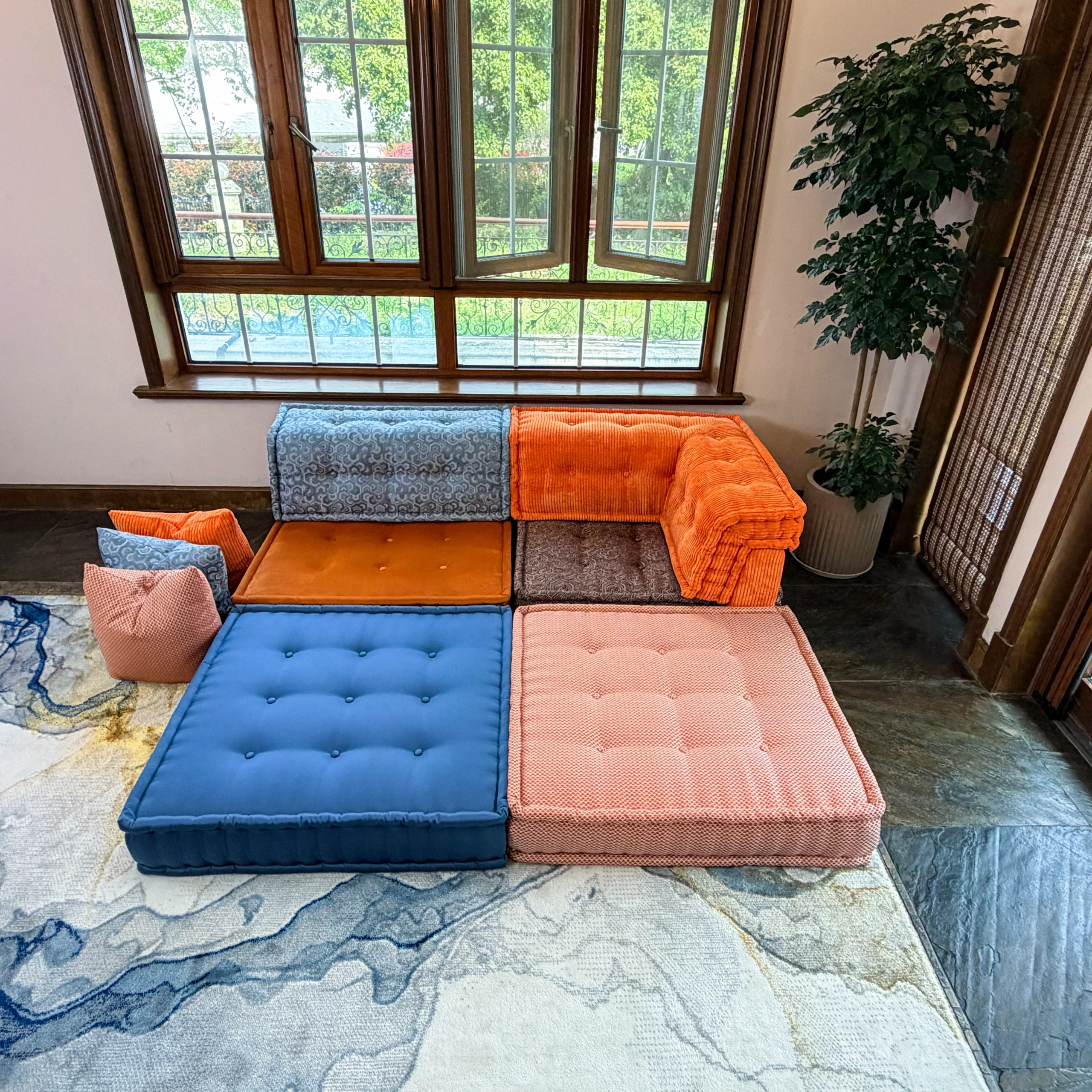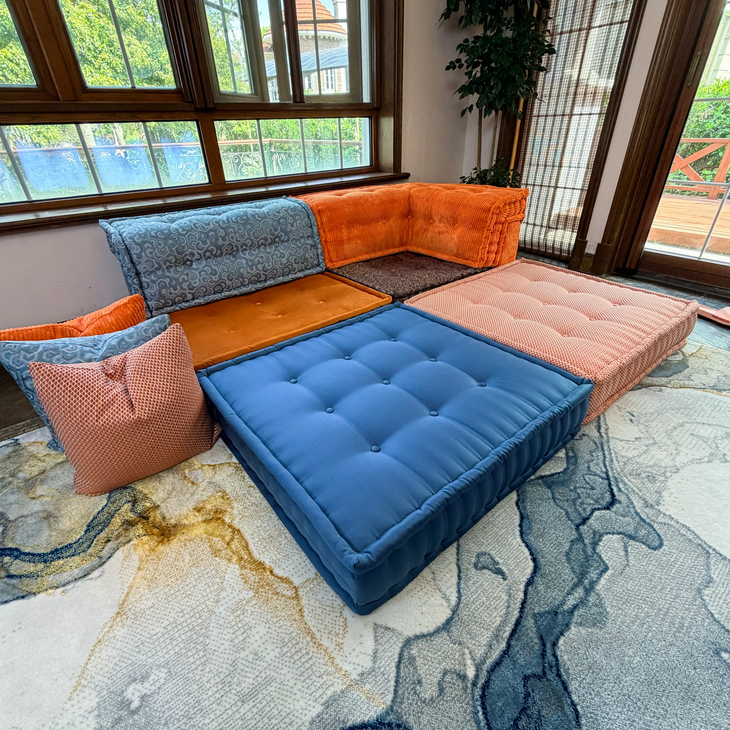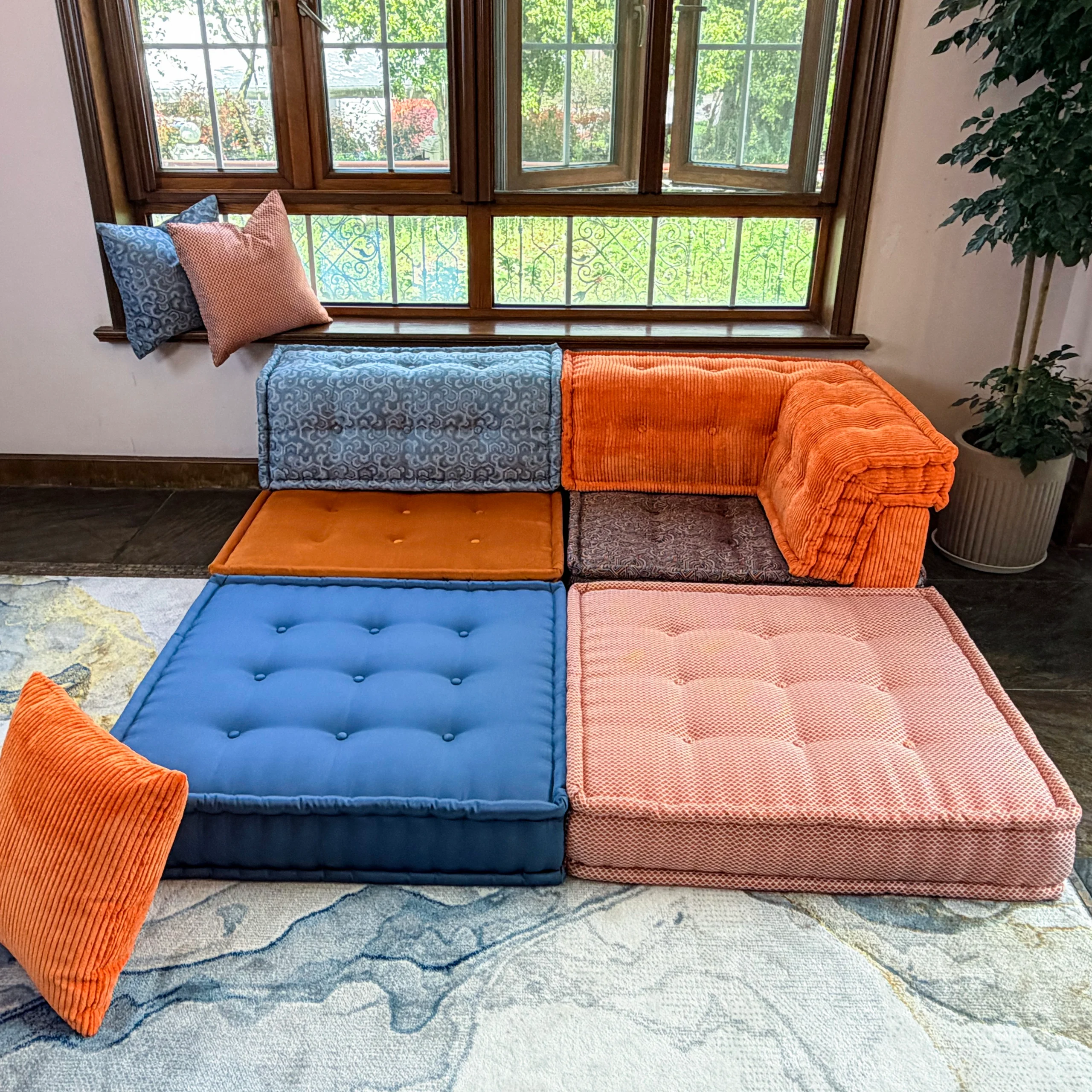 Our modular sofa is made up of individual square modules that can be arranged in various configurations—linear, L-shaped, U-shaped, or even as standalone pieces. The flexibility allows it to adapt to different room layouts and purposes, from lounging to entertaining.