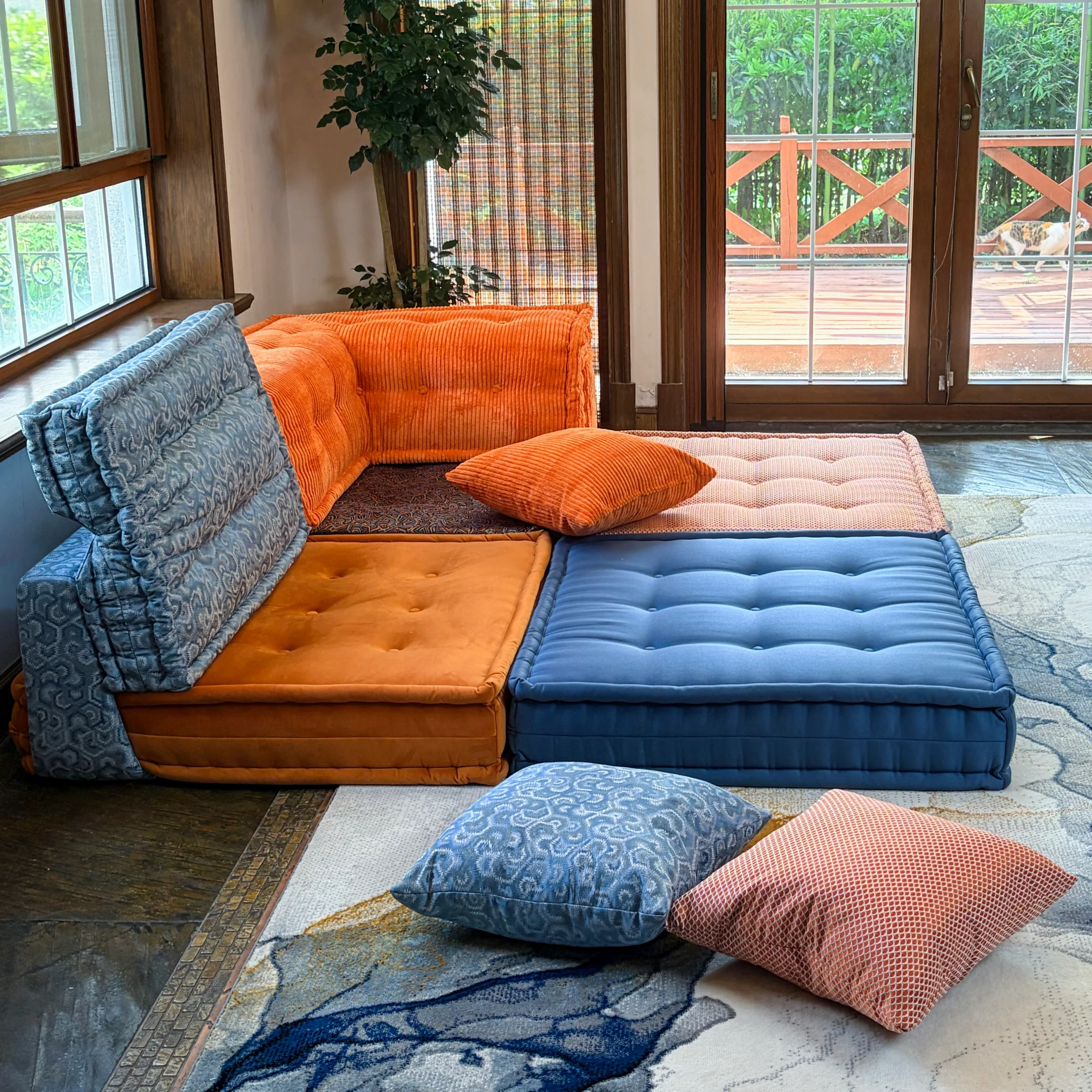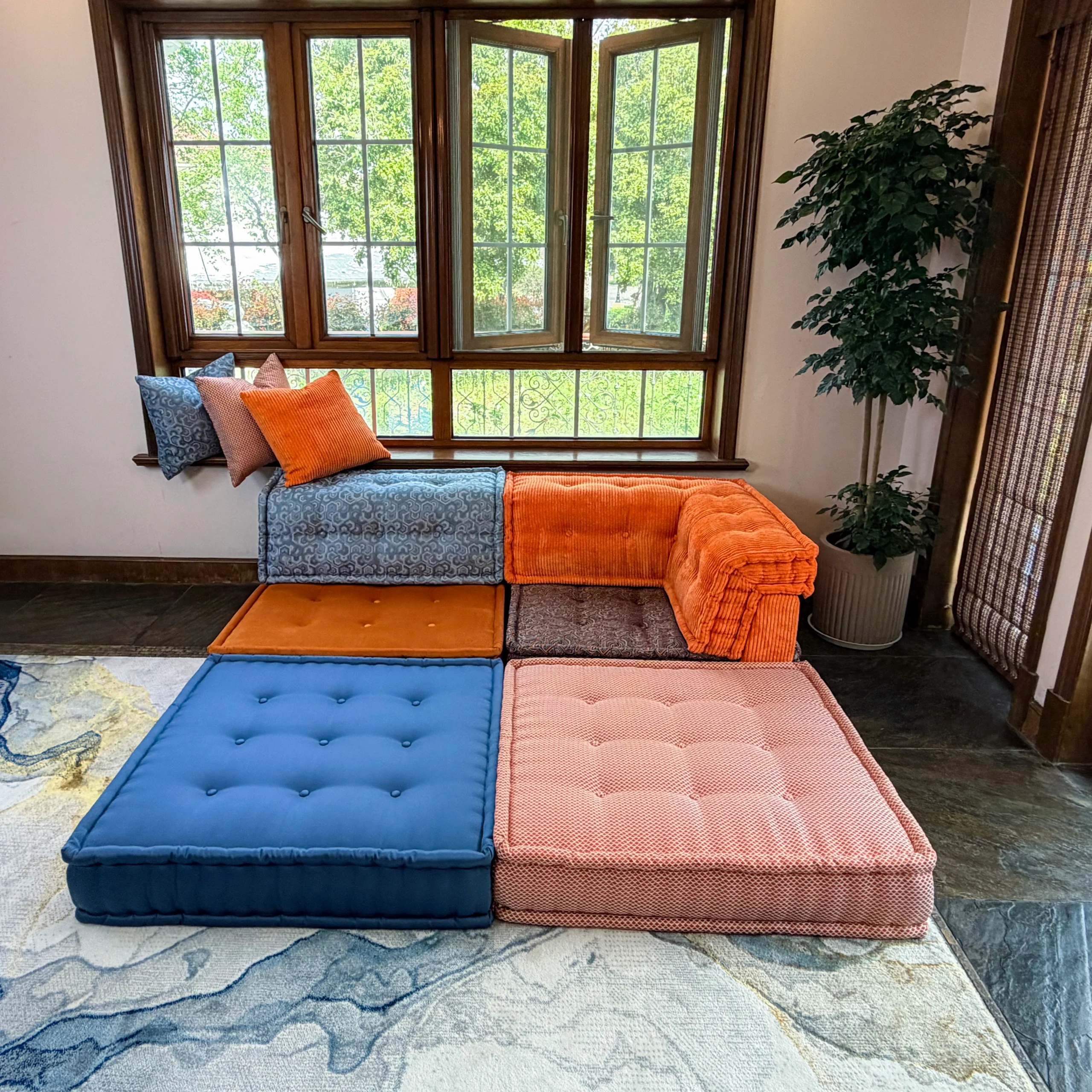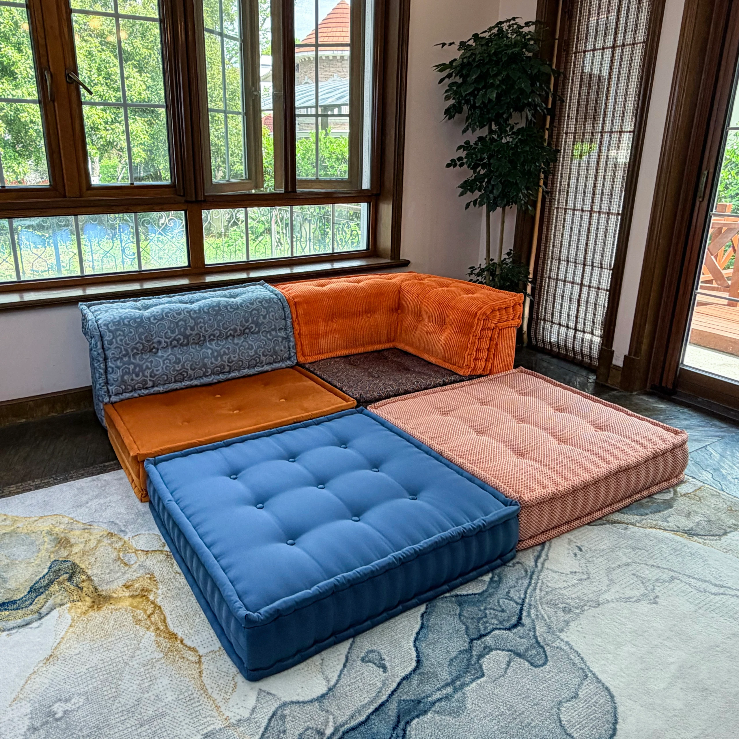 Our modular sofa is made up of individual square modules that can be arranged in various configurations—linear, L-shaped, U-shaped, or even as standalone pieces. The flexibility allows it to adapt to different room layouts and purposes, from lounging to entertaining.