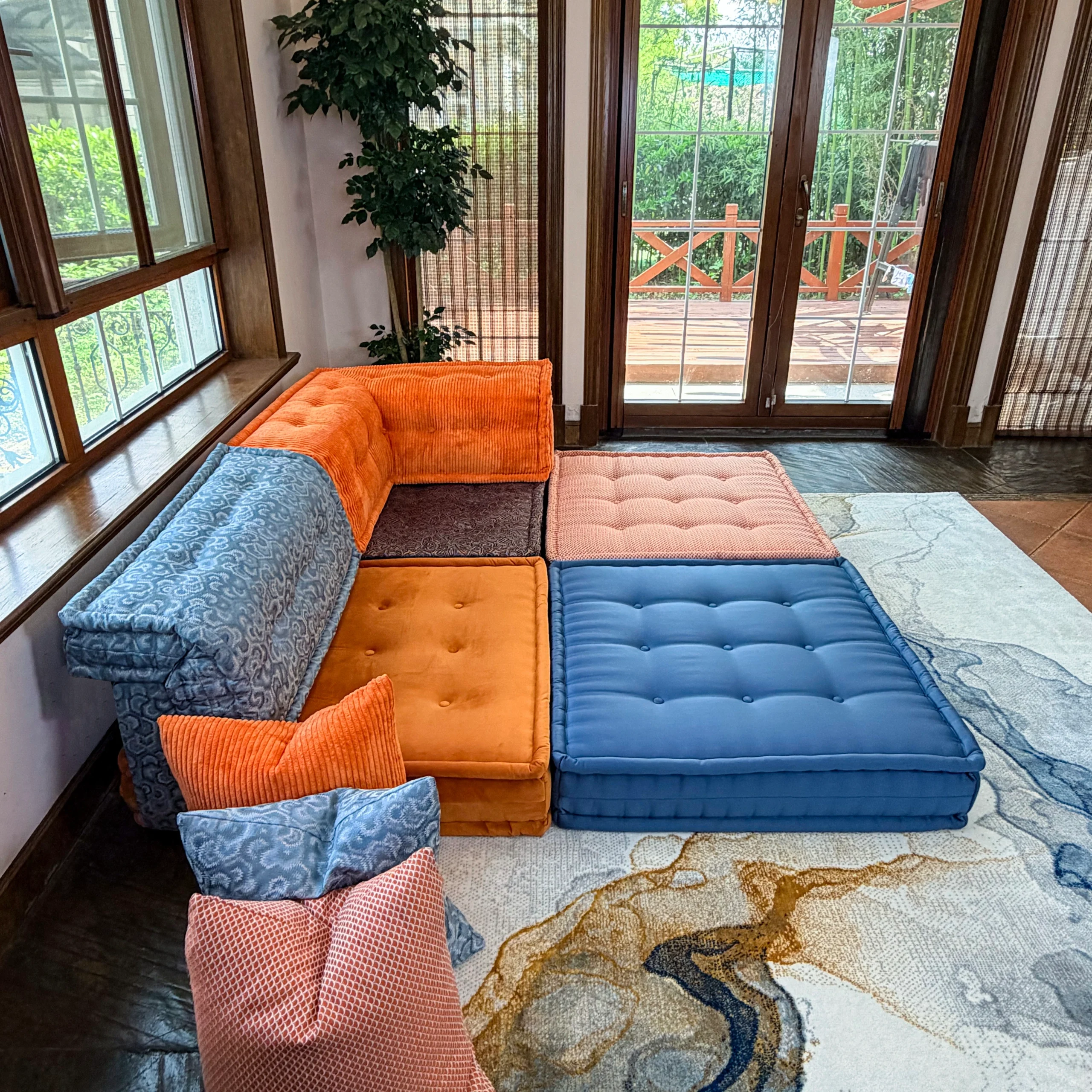 At Adorn Croft, our modular sofas are designed to be accessible to everyone, not just the elite. We go beyond traditional offerings by providing unparalleled customization in shapes, sizes, and upholstery. Whether you need a sofa that fits curved walls, window sills, or a unique layout, we can create it. Our sofas are crafted with high-density, high-resilience foam (2.81 lb/ft³) for exceptional comfort and durability, ensuring they last up to 15 years. Plus, we offer bespoke fabric options, including digital print velvets, suede, and genuine leather, allowing you to design a piece that truly reflects your style.