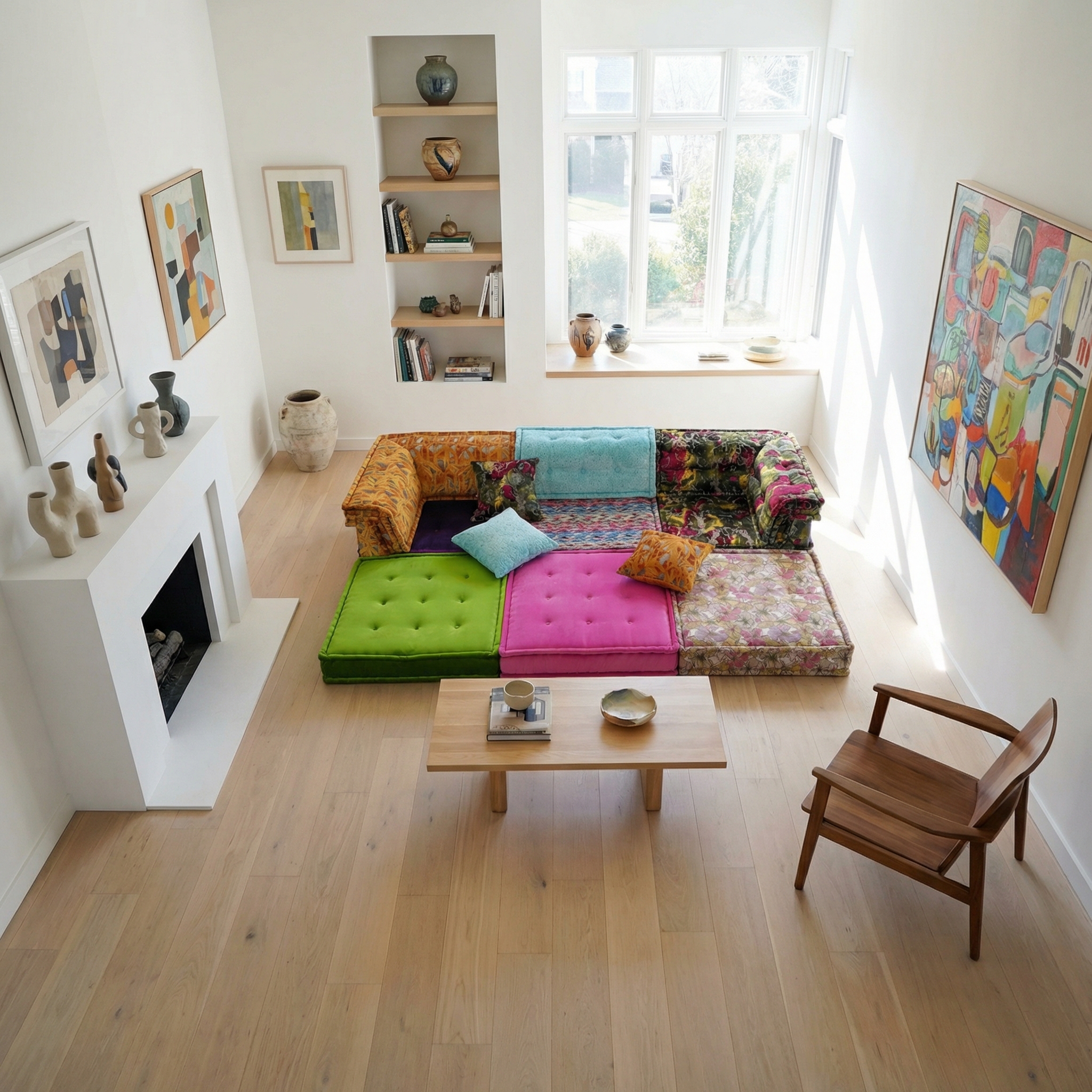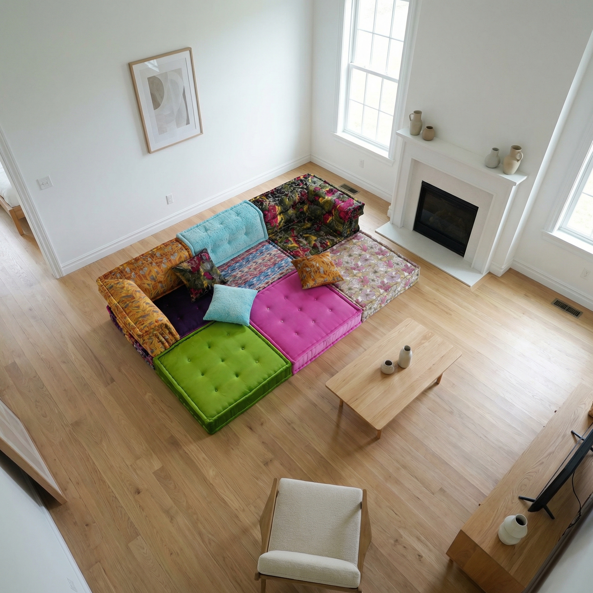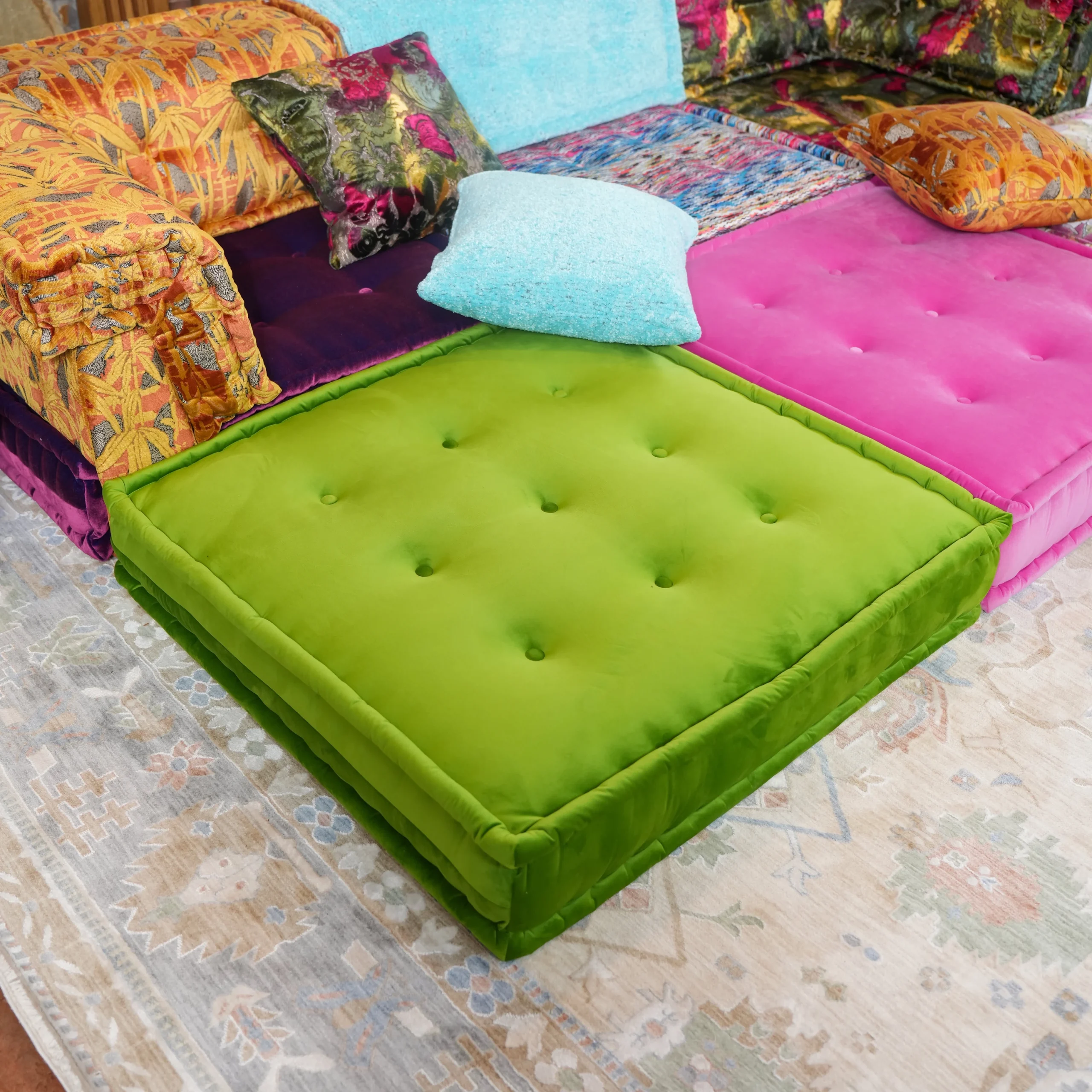 Our modular sofa is made up of individual square modules that can be arranged in various configurations—linear, L-shaped, U-shaped, or even as standalone pieces. The flexibility allows it to adapt to different room layouts and purposes, from lounging to entertaining.