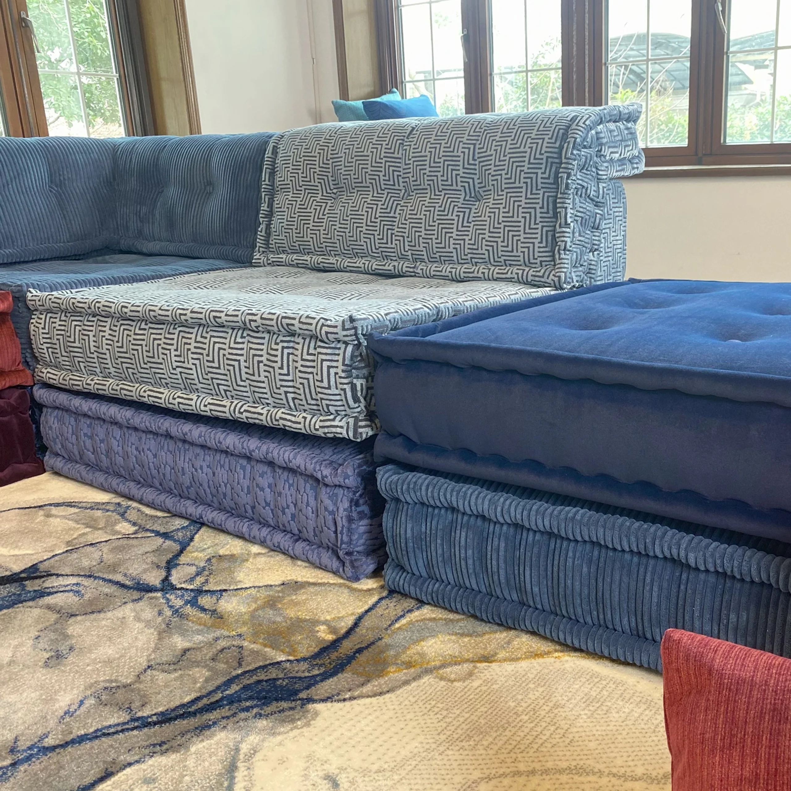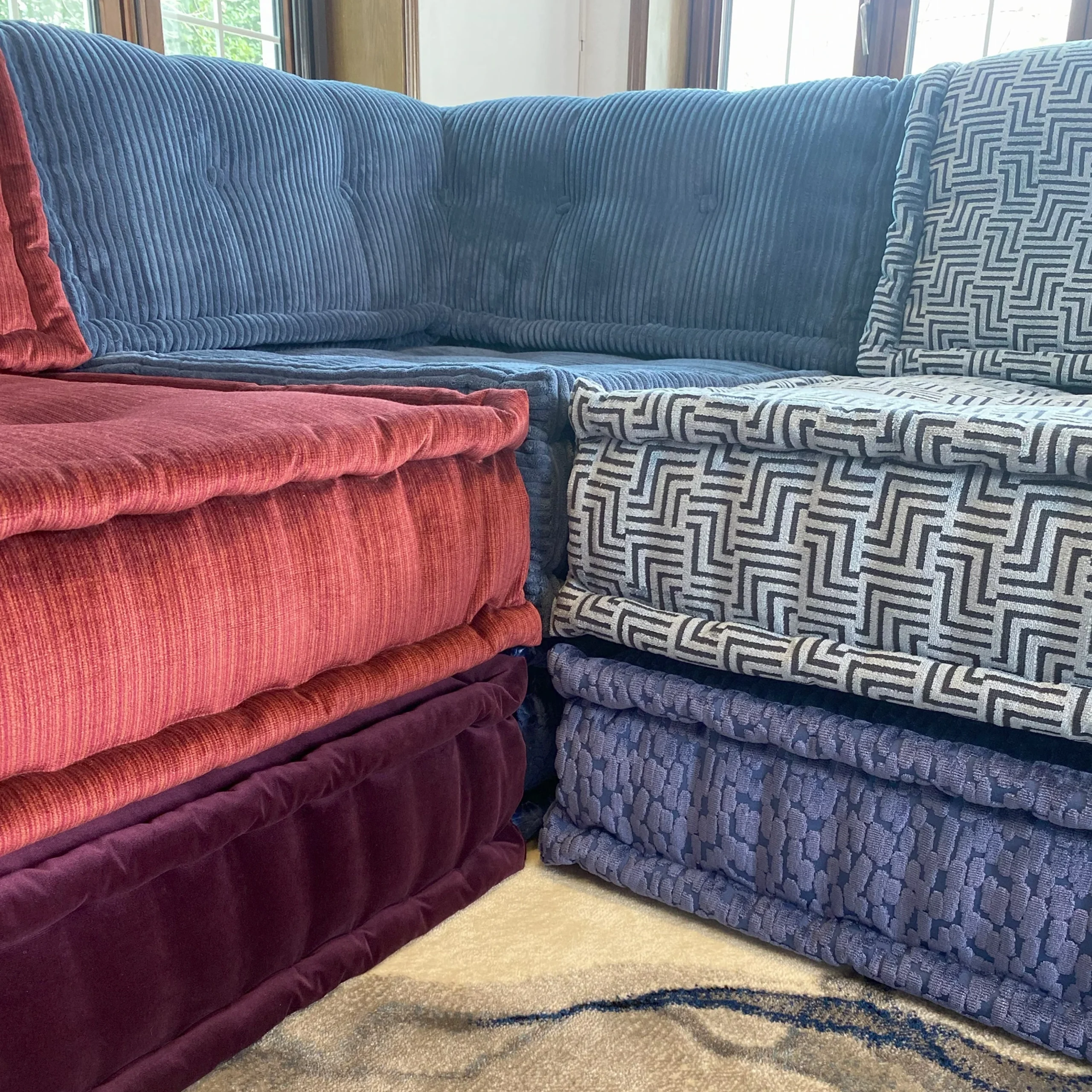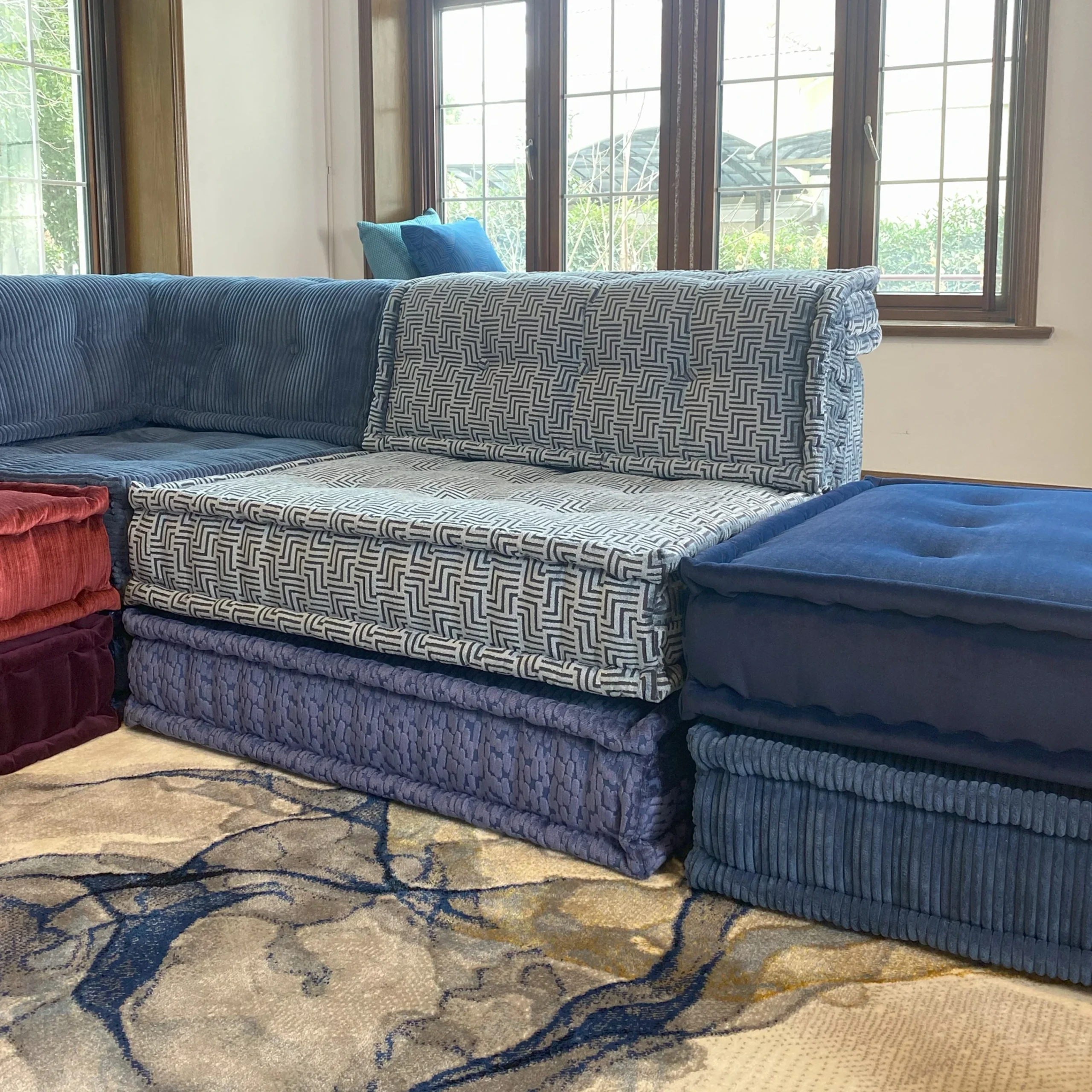 Our modular sofa is made up of individual square modules that can be arranged in various configurations—linear, L-shaped, U-shaped, or even as standalone pieces. The flexibility allows it to adapt to different room layouts and purposes, from lounging to entertaining.