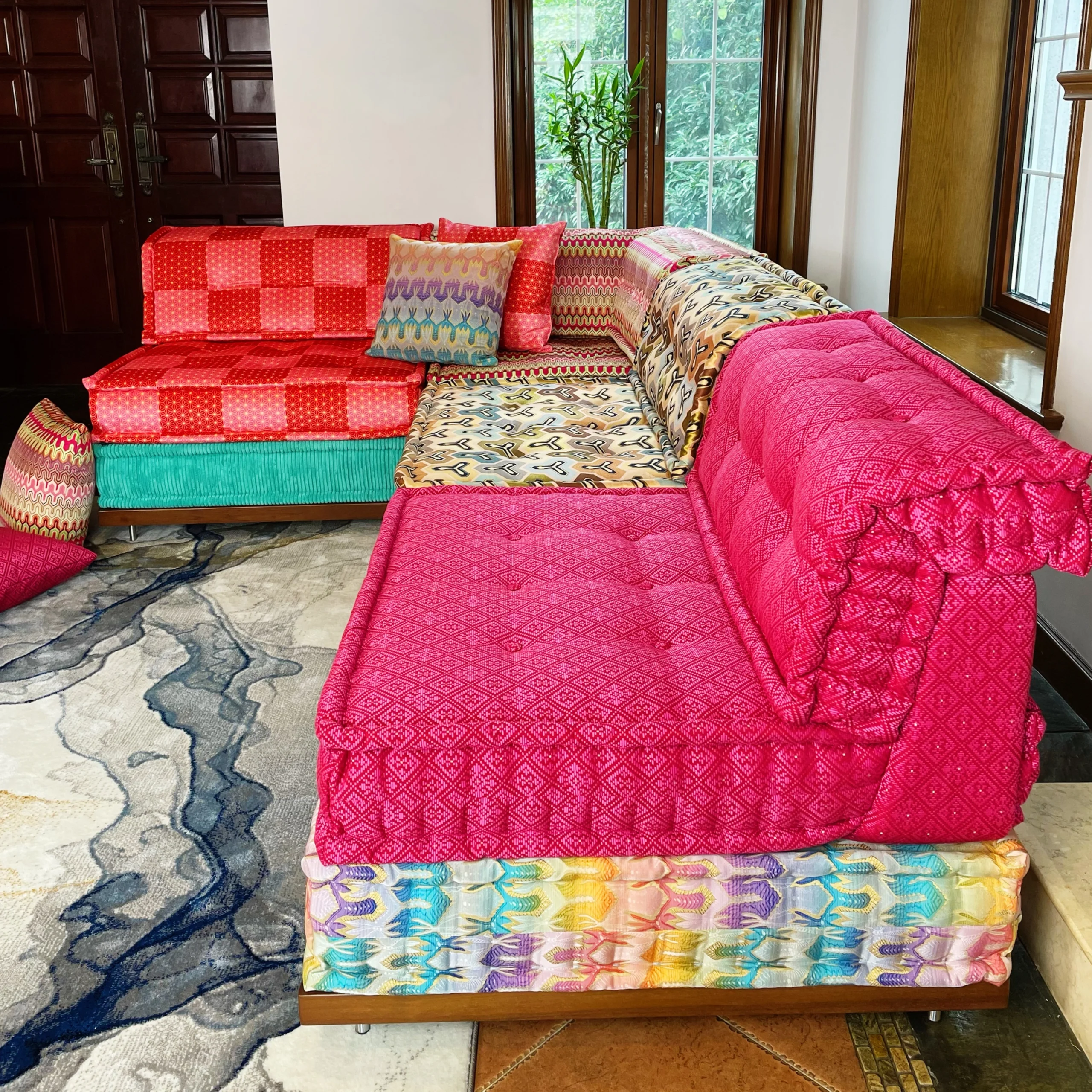 At Adorn Croft, our modular sofas are designed to be accessible to everyone, not just the elite. We go beyond traditional offerings by providing unparalleled customization in shapes, sizes, and upholstery. Whether you need a sofa that fits curved walls, window sills, or a unique layout, we can create it. Our sofas are crafted with high-density, high-resilience foam (2.81 lb/ft³) for exceptional comfort and durability, ensuring they last up to 15 years. Plus, we offer bespoke fabric options, including digital print velvets, suede, and genuine leather, allowing you to design a piece that truly reflects your style.