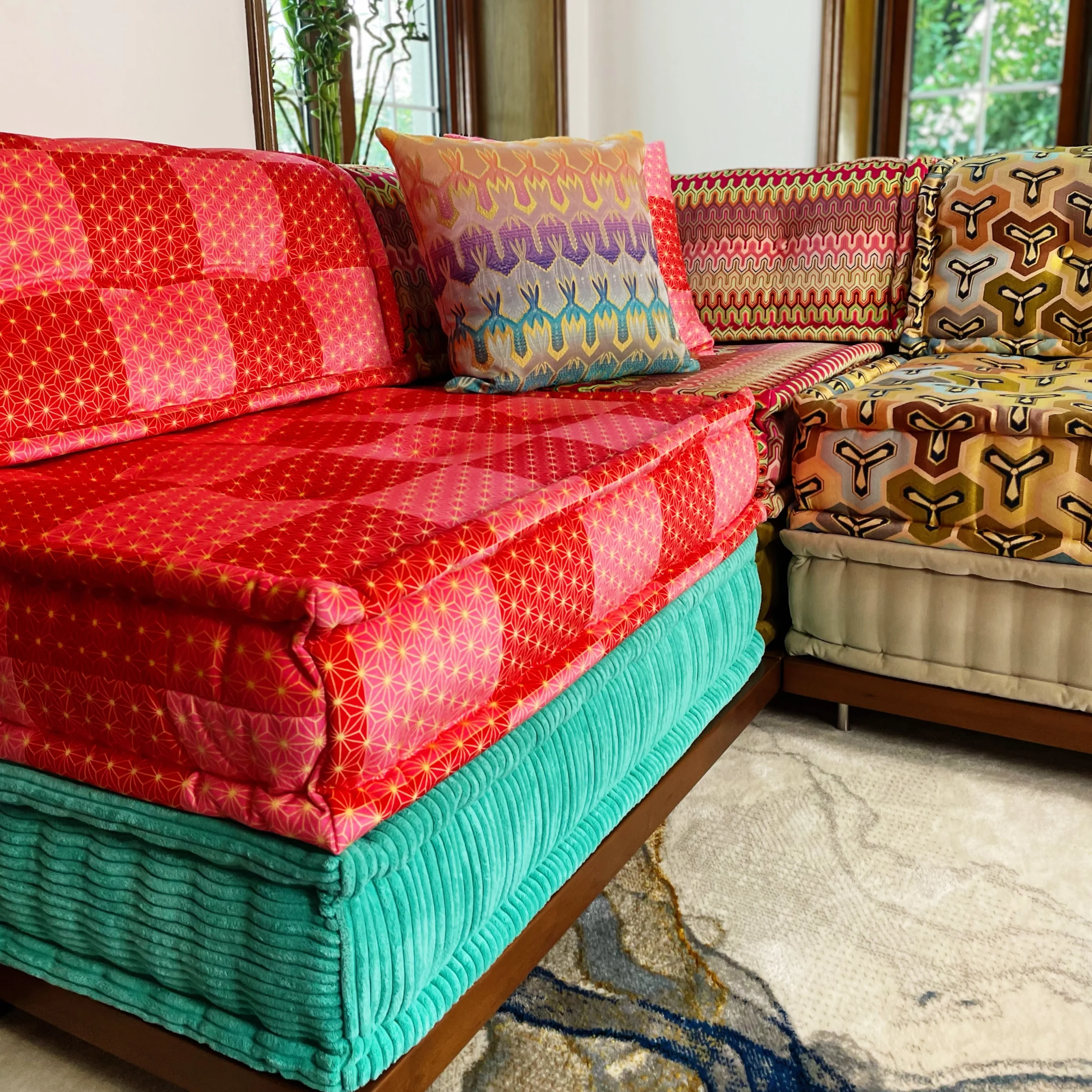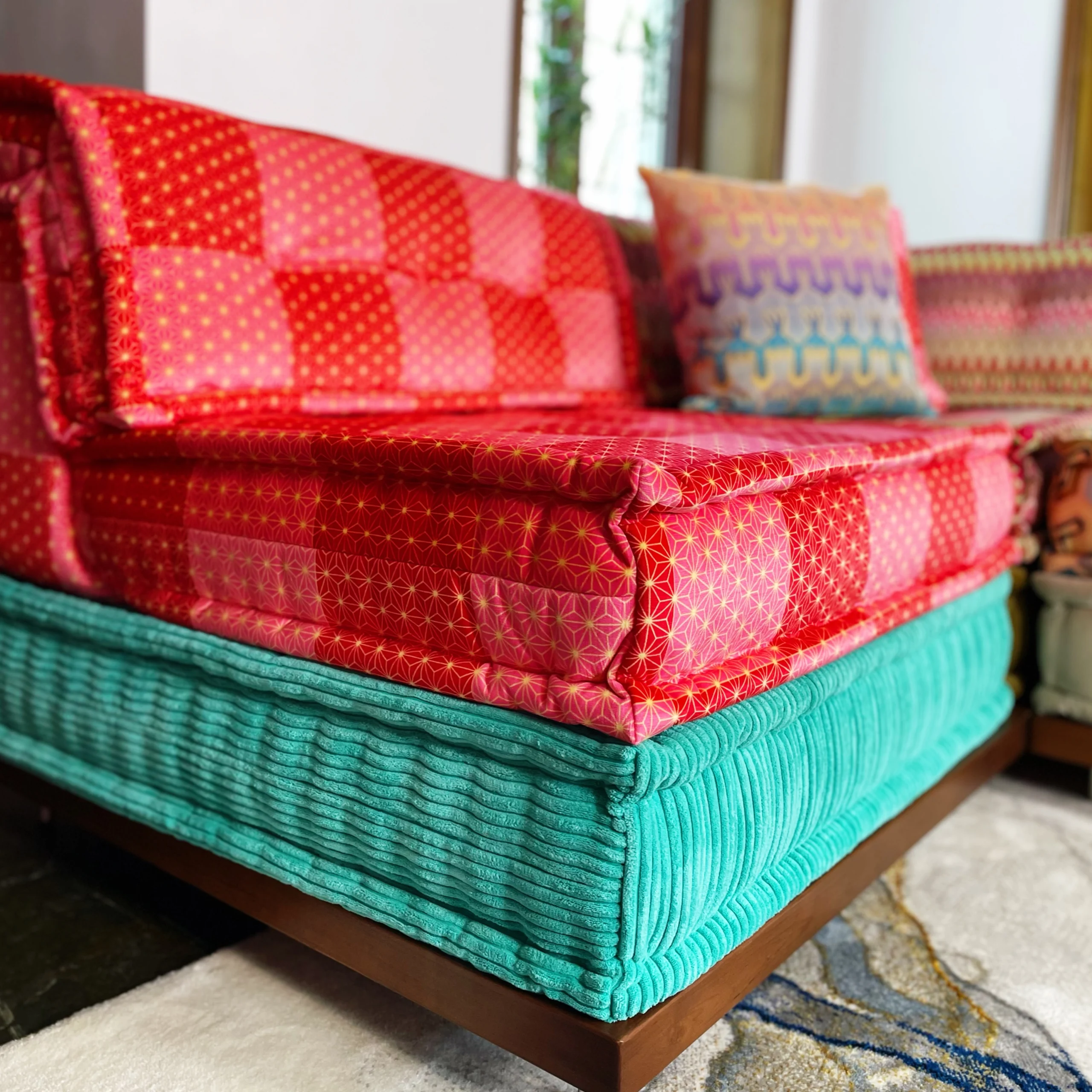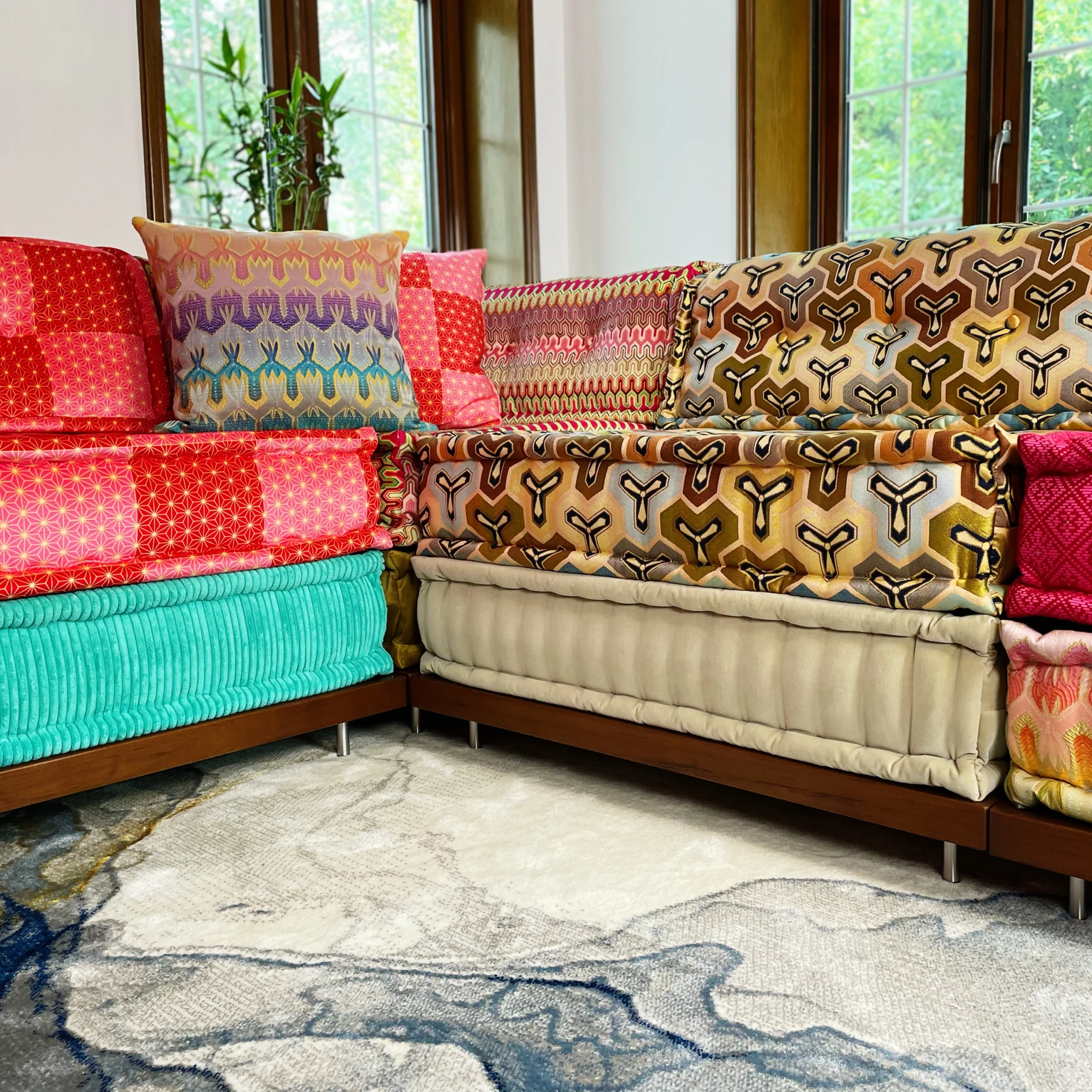 More than 90% of our clients have small children or pets at home and wouldn’t like to get your sofa dirty or damaged. Our protective seating pads topper cover can be customized with your fabric of choice to match your existing modular sectional sofa couches.
