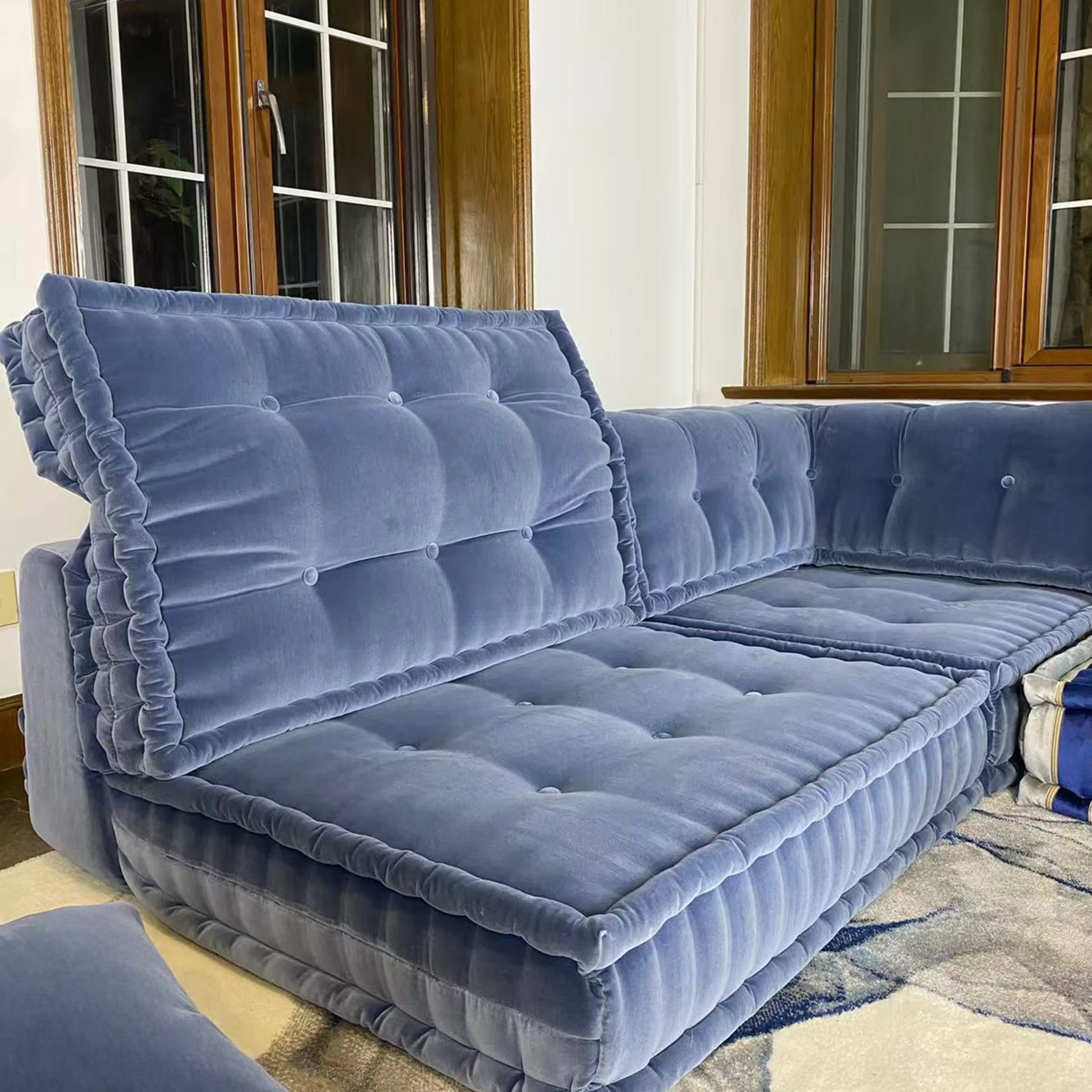 Our modular sofa is made up of individual square modules that can be arranged in various configurations—linear, L-shaped, U-shaped, or even as standalone pieces. The flexibility allows it to adapt to different room layouts and purposes, from lounging to entertaining.