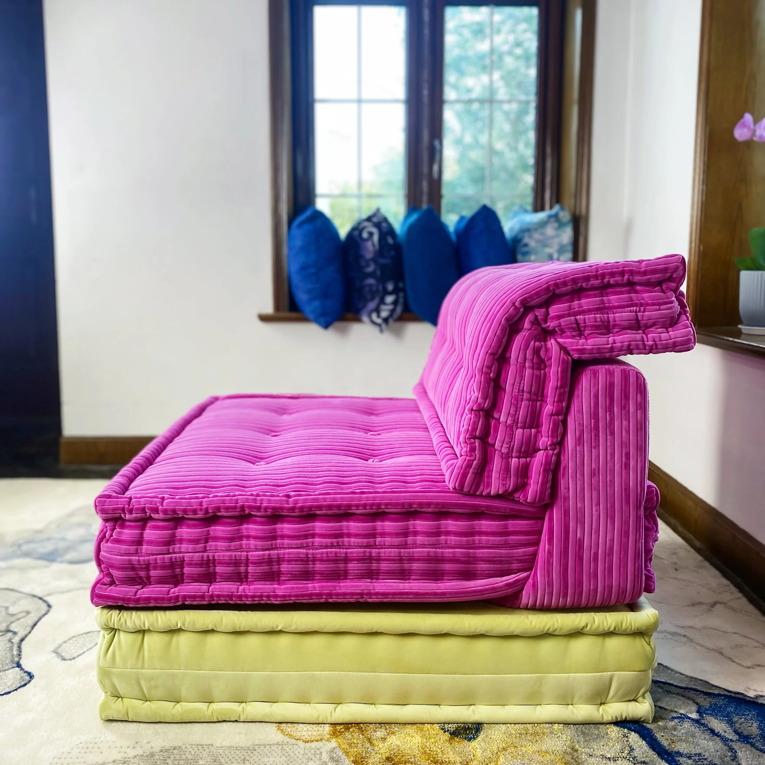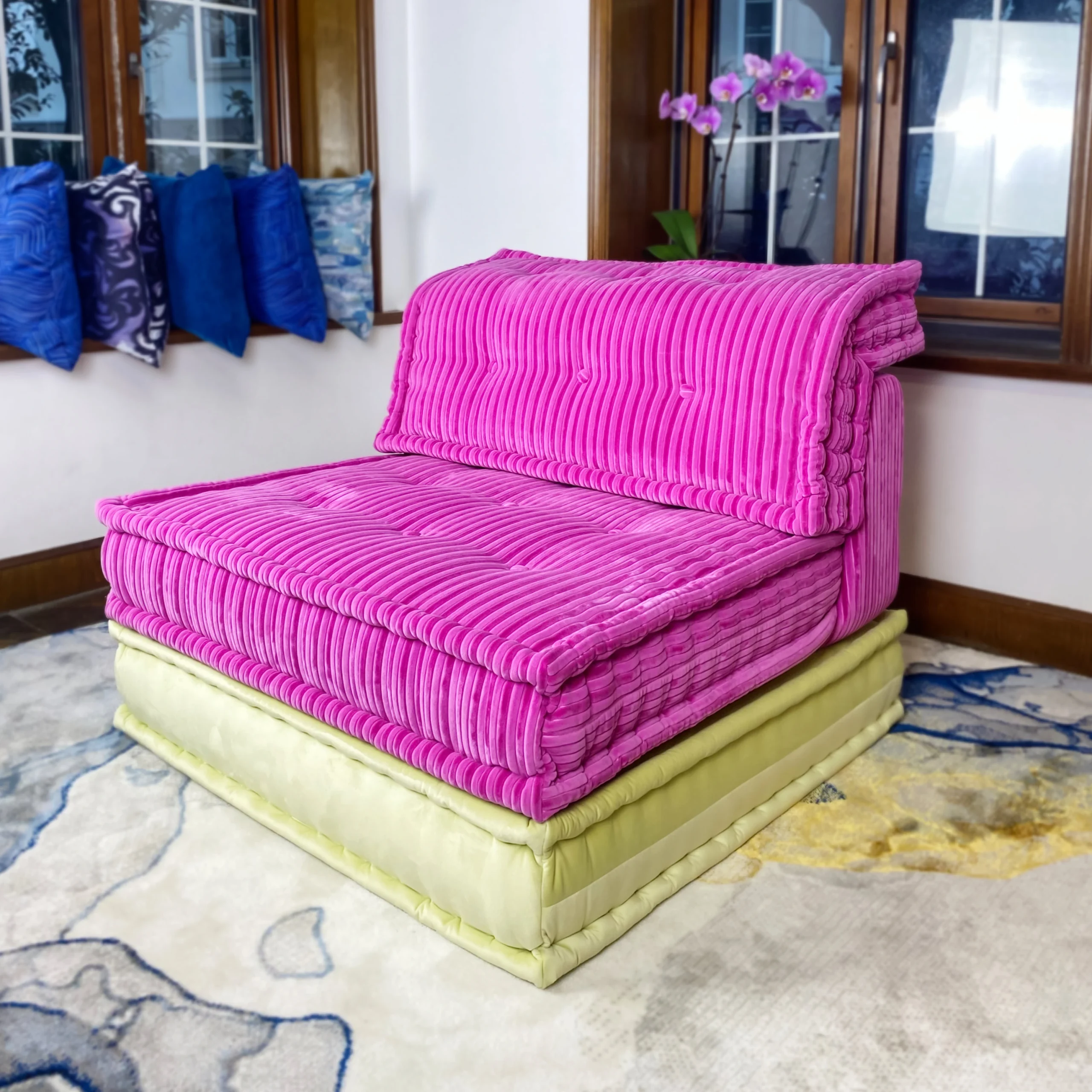 Our modular sofa is made up of individual square modules that can be arranged in various configurations—linear, L-shaped, U-shaped, or even as standalone pieces. The flexibility allows it to adapt to different room layouts and purposes, from lounging to entertaining.
