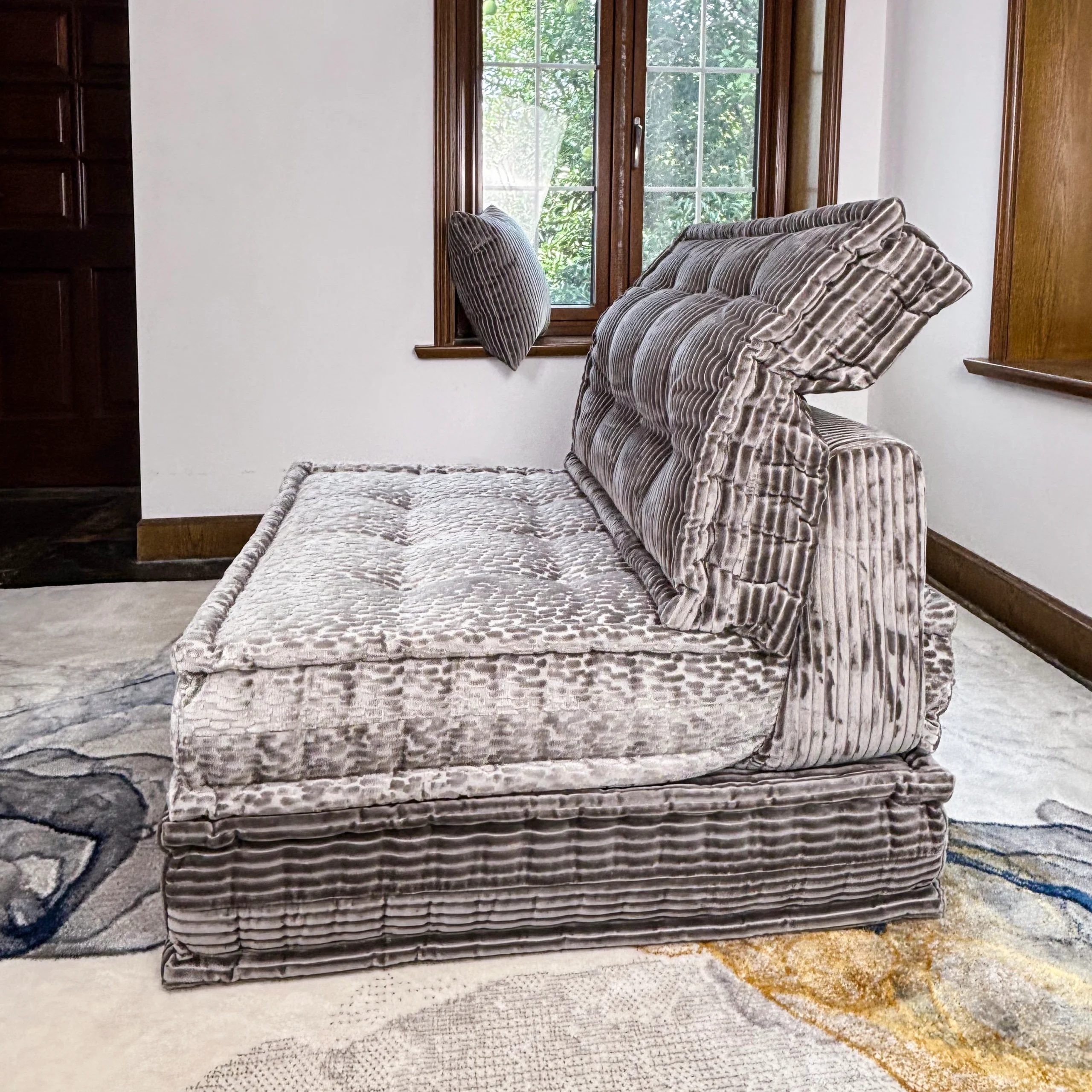 Our modular sofas are fully customizable to suit your space and preferences. You can choose from a wide range of shapes, sizes, and configurations to fit any room layout—even curved or unconventional spaces. We also offer bespoke upholstery options, including custom-designed digital print velvets, luxurious suede, and premium genuine leather. Every detail, from the fabric to the foam density, is tailored to your needs, ensuring a one-of-a-kind piece that’s uniquely yours.